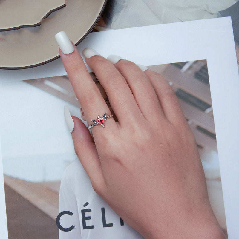 Framed by small bat-like wings and a pointed lower edge, the design blends sweetness with a hint of gothic edge, making it perfect for anyone who wants something cute yet bold. Despite its detailed look, the ring remains lightweight and comfortable for everyday wear, thanks to its high-quality S925 silver composition that resists tarnishing and ensures long-lasting shine.